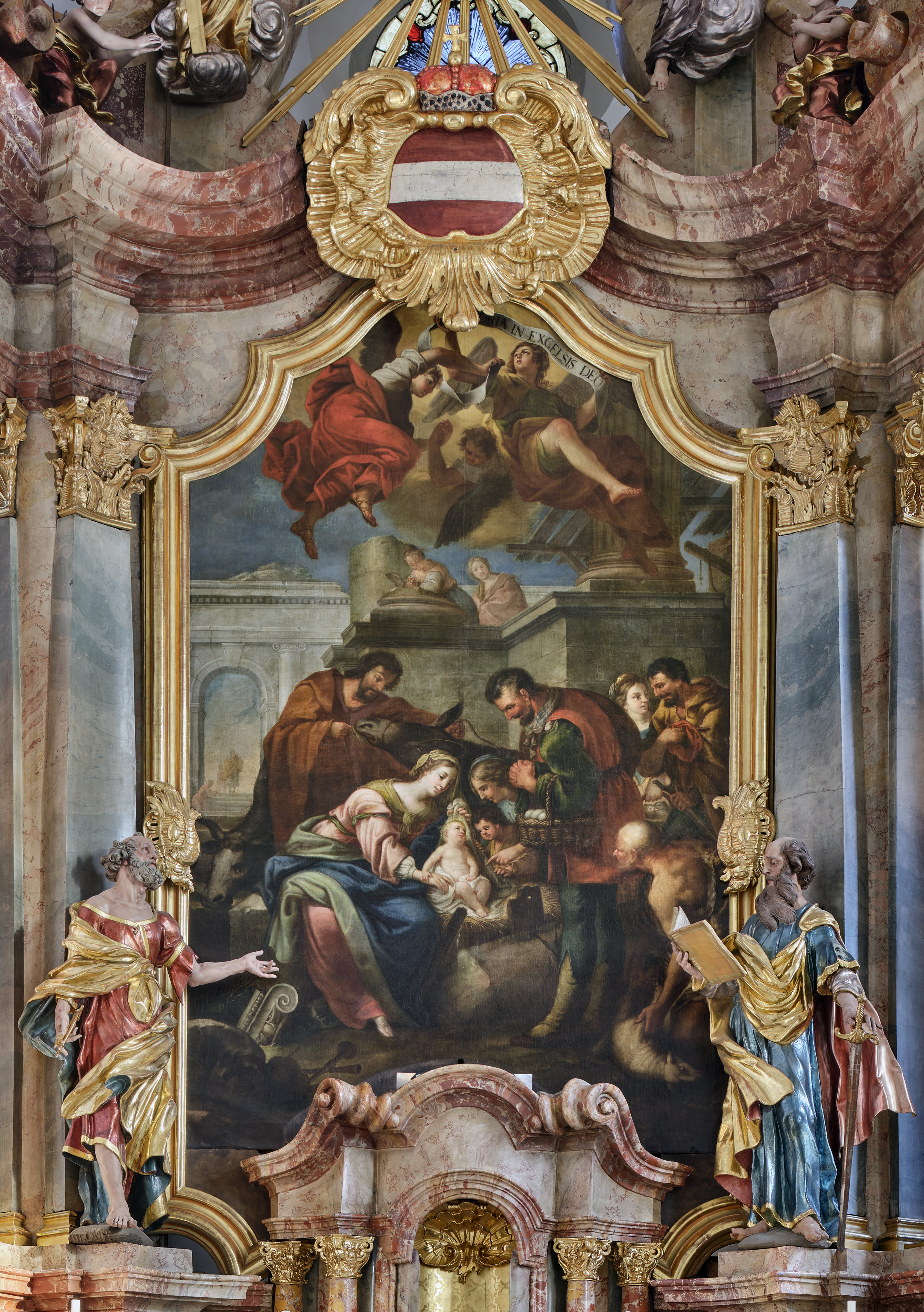 Die Stadtpfarrkirche wurde nicht als Barockkirche gebaut - hier ist die meisterhafte Barockisierung einer vorhandenen gotischen Kirche gelungen. Außen dominiert immer noch der mächtige gotische Turm, der Barock ist sehr zurückhaltend. Innen zeigt sich eine lebendige Barockkirche mit Bildern und Stuck, die teilweise bereits ins fröhliche Rokoko übergehen.
